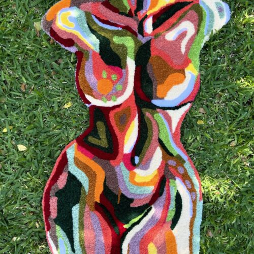 Contoured rugs feature a clearly defined edge between colours and/or lines to create a raised effect, accentuating the design. These rugs required the largest time commitment to “carving”, using scissors and shavers to create the contours. Ideal for simple designs with clear distinction between colours.